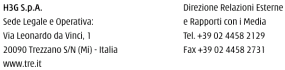 3 - Is the commercial brand of H3G, the mobile video company in the Italian market. After having won the UMTS license in Italy in November 2000, with the offer of 3.25 billion euros, 3 launched its service at the beginning of March 2003, aiming for leadership of the third generation mobile market. Among its shareholders are prominent leaders in Italy and the world, from the sectors of telecommunications, the Internet and new media, publishing and finance. Hutchison Whampoa Limited is the primary shareholder with 88,67% of the authorized capital. The other shareholders include CIR, S. Paolo Imi, BMI, RCS Mediagroup, Gemina and Tiscali.